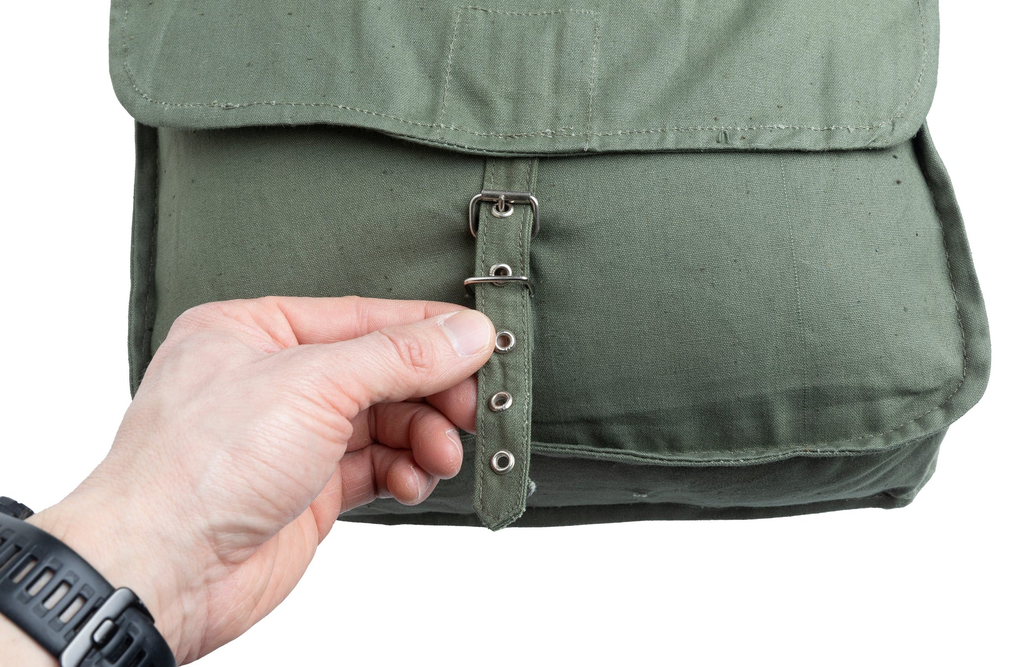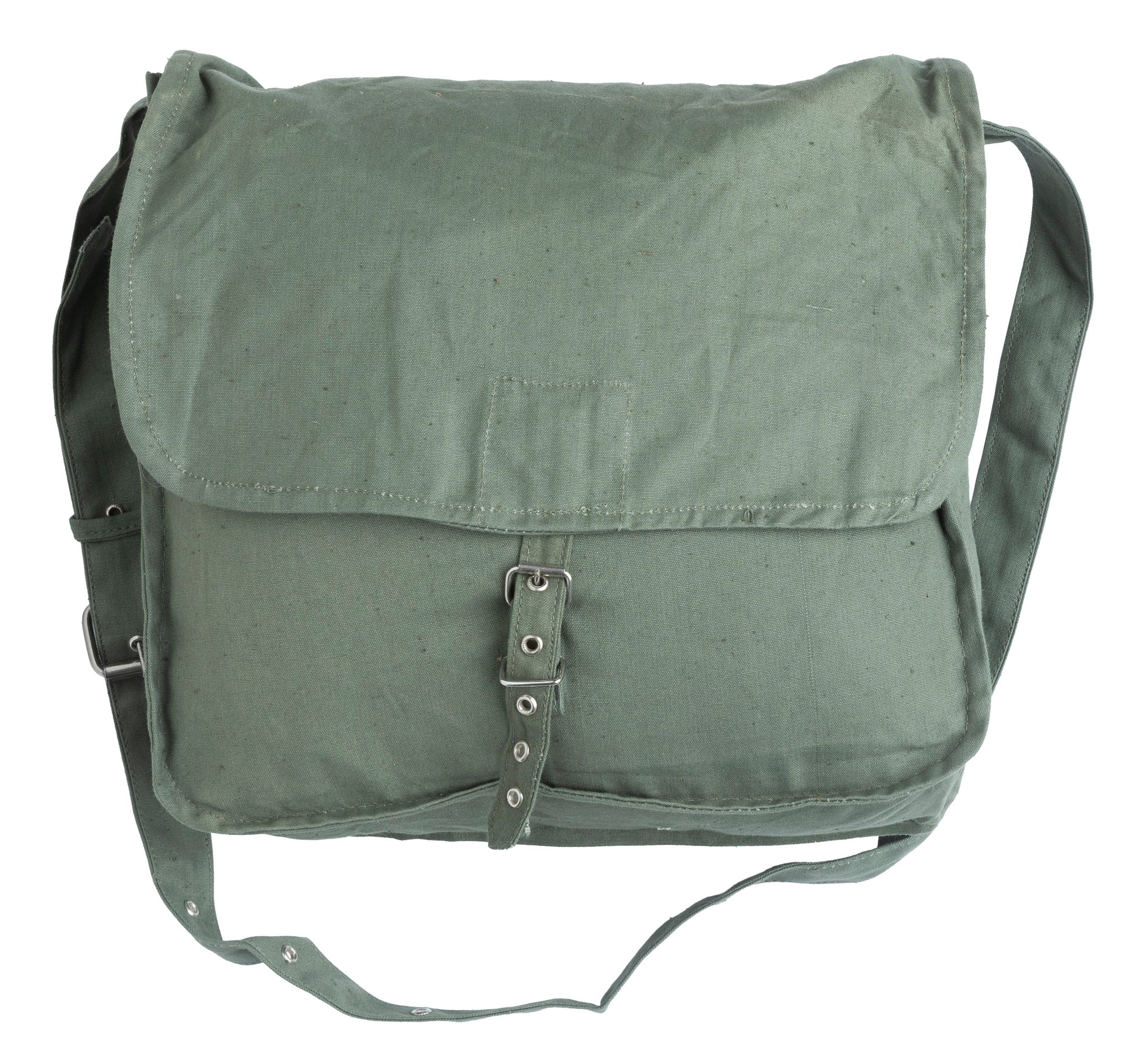 Eine traditioneller, herrlich hässlicher Brotbeutel, der perfekt für Geschichtsliebhaber, Boheme-Künstler und alle ist, die Vintage-Militärtaschen mögen. Hergestellt im altmodischen Bulgarien, daher variieren Farben, Details und Materialien wie es sich für echte Ostblock-Ausrüstung gehört.