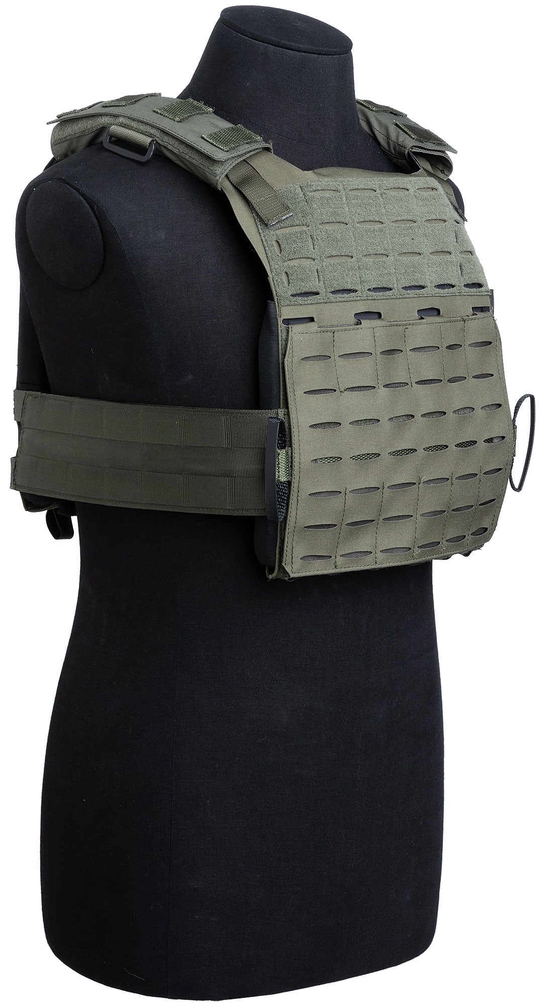 • Large laser cut MOLLE/PALS panels with hook & loop surface in the upper part of front and back plate bags