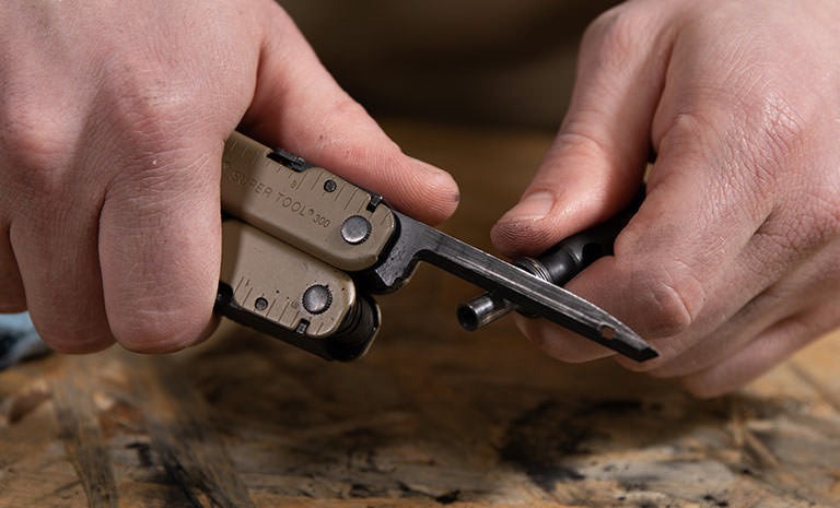 The Super Tool 300M has a low-key appearance thanks to not having exterior tools. Chances are you already carry a folding or fixed blade on your belt or elsewhere within easy reach. The inner tools have spine locks.