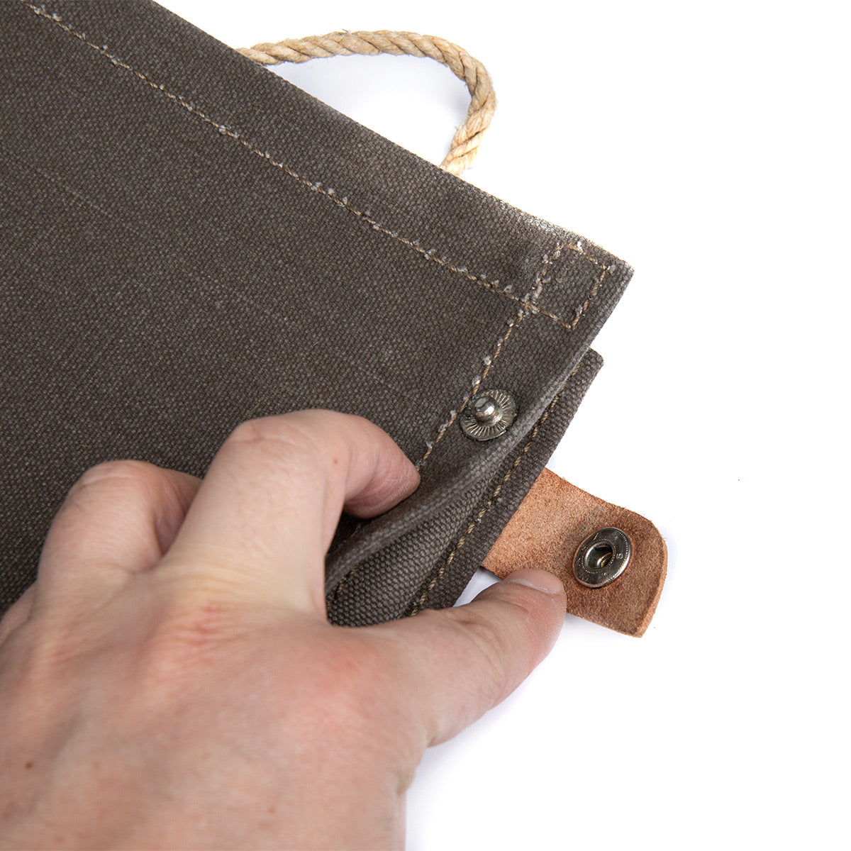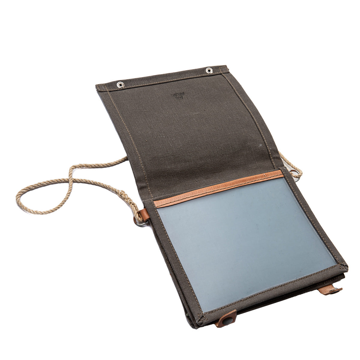 Behind the window there's another thicker compartment for even more documents. The whole front face is covered by the flap. There's a very spartan rope for carrying the case. You can replace it with your own creations if you want to show your wealth.