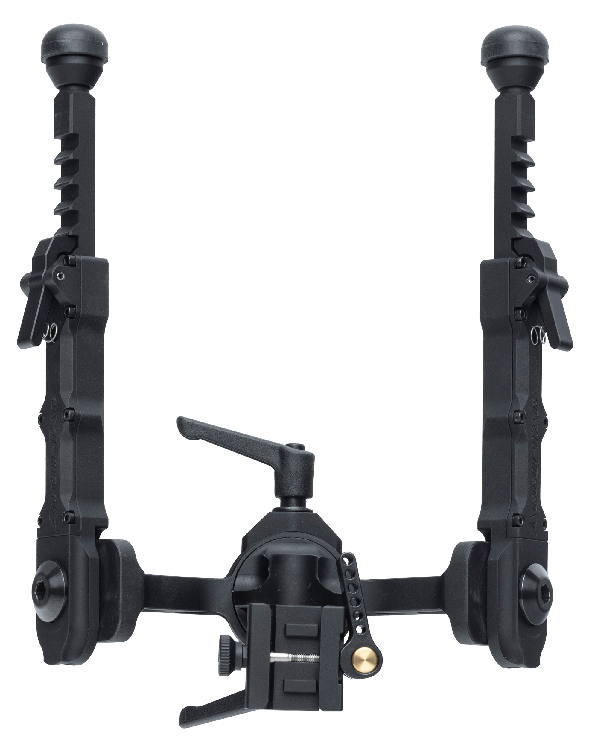 The base of the bipod has tightening screws with handles. These allow you to fine-tune the tilt and pan functions. You can leave the screw slightly loose, allowing for adjustments without the rifle wobbling on the bipod like a madman's flaccid member. If you don't need the pan function to rotate the rifle relative to the bipod, you can tighten it fully, disabling the pan feature.