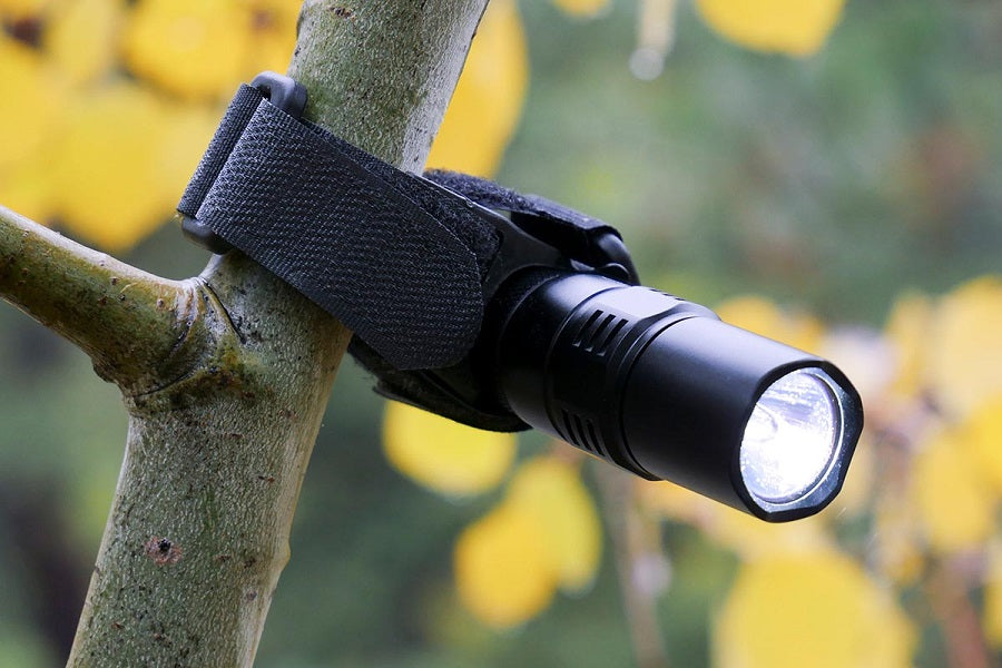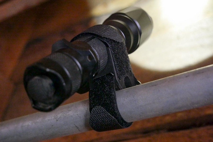 This Universal Mount is the perfect tool for any flashlight owner who needs to attach their flashlight to a tent, camper, bicycle, tree—just about anywhere where hands-free light is needed. Constructed of oil and temperature-resistant thermoplastic blocks and mil-spec hook and loop straps, this durable little mount is weather-resistant and perfect for all outdoor use.
