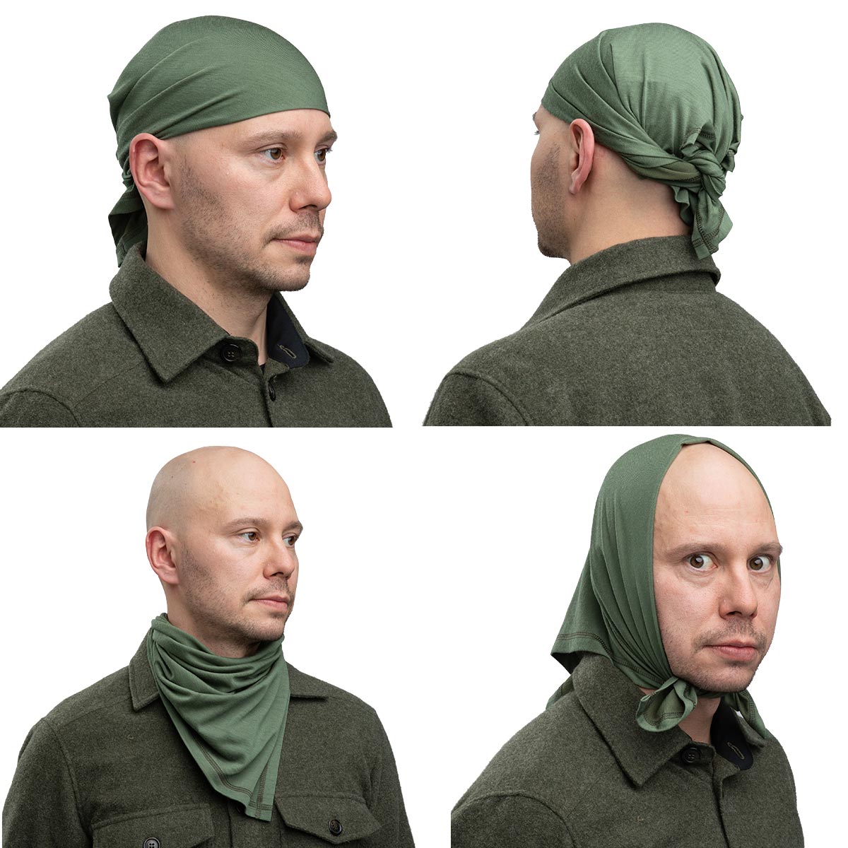 This scarf is basically a classic bandana without stupid patterns and made from Merino wool. This nature’s own magic material retains more insulating properties even when wet, and is generally regarded as the best thing you can wear next to your skin. Merino wool is such fine stuff that it doesn't itch. So, you can erase the image of old-time steel wool from your head. This is almost erotically soft and smooth. Colors: Jet Black and War-is-Hell Green. Made in the EU in Lithuania.