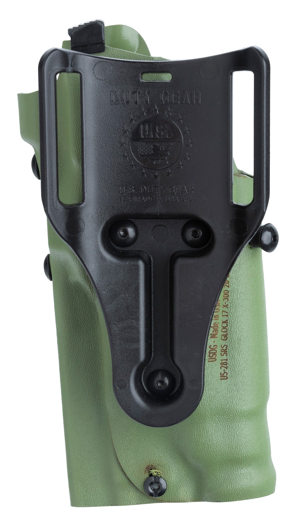 If the space-age plastic box holsters from some other manufacturers don’t appeal to you, choose US Duty Gear – this model is traditionally shaped to complement the contours of the pistol and light, without any unnecessary modern art edginess. The holster is made from SDR thermoplastic, designed to withstand all the wear and tear of work and other use.