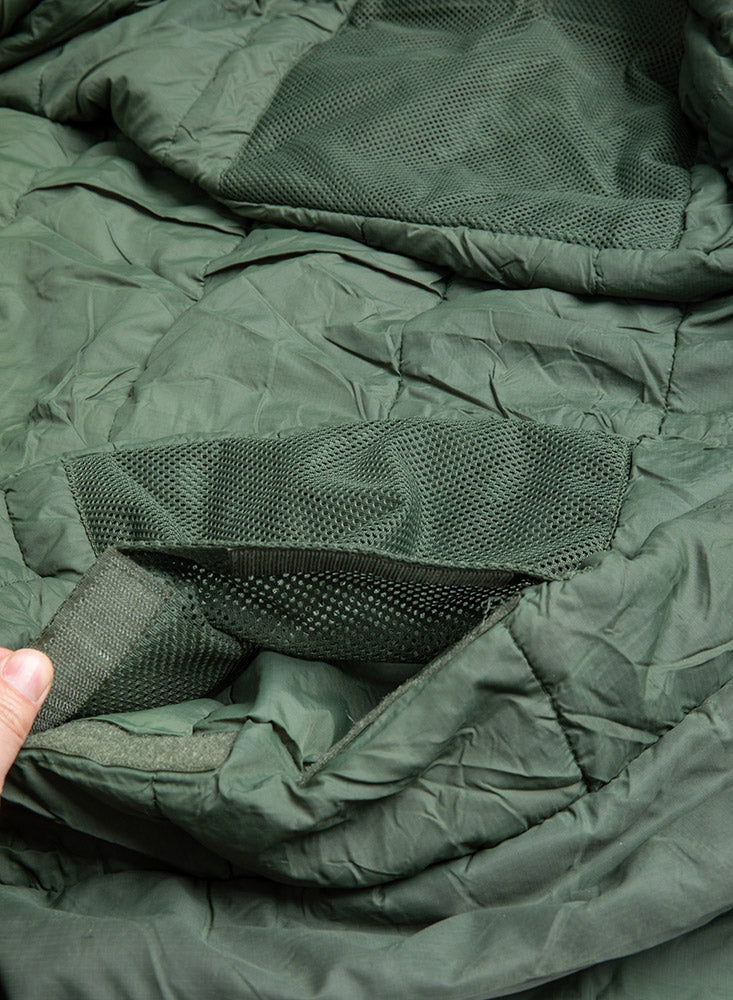 The bag is almost a direct copy of the Carinthia Defence 4 sleeping bag. There are not many British specialities in this one, except the tried and true mesh pockets for valuables and such. The colour is green, and every component is high-quality stuff. The opening can be adjusted and the bag has hook-n-loop tabs along the main zipper. On the inside there are attachment points for a liner bag, Carinthia's model will fit.