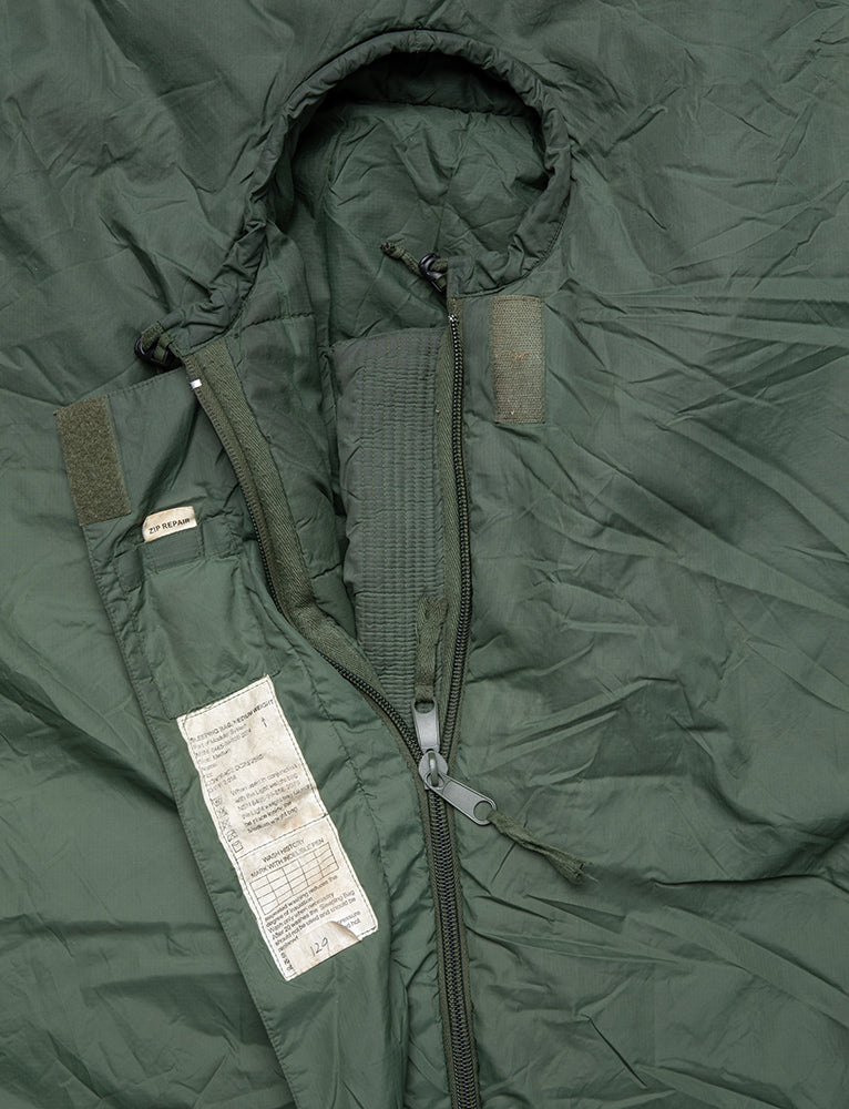 The most useful part of the British modular sleeping bag system is this three-season bag. What separates this military bag from many civilian ones is more bulk, stronger materials and a way cheaper price, being army surplus.