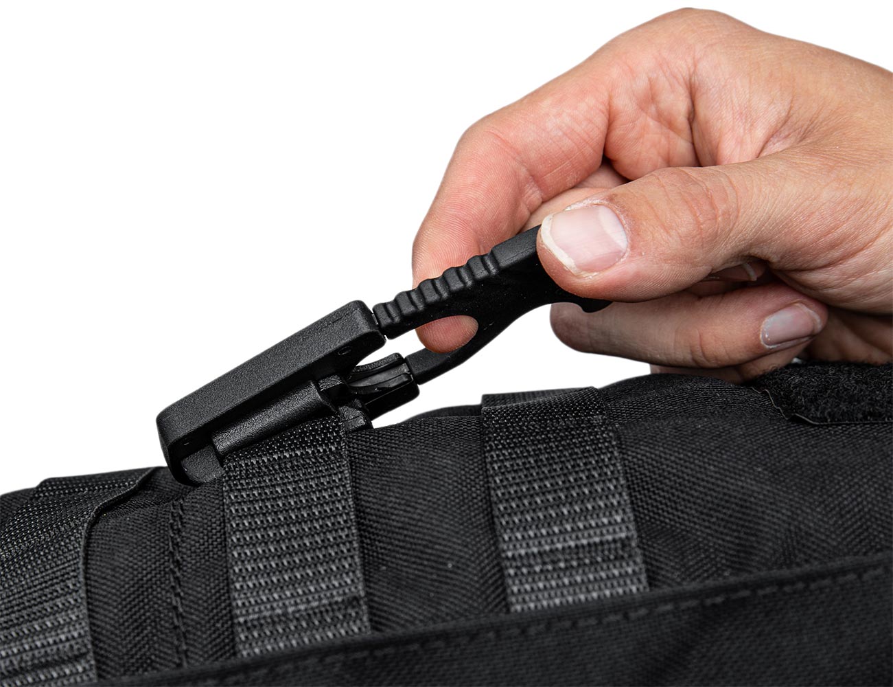 The sheath has a MALICE clip for attaching to MOLLE/PALS webbing or just a belt (up to 50 mm / 2" wide). In the modern world of micro-aggressions, it's nice to notice that it's symmetrical to serve southpaws as well.