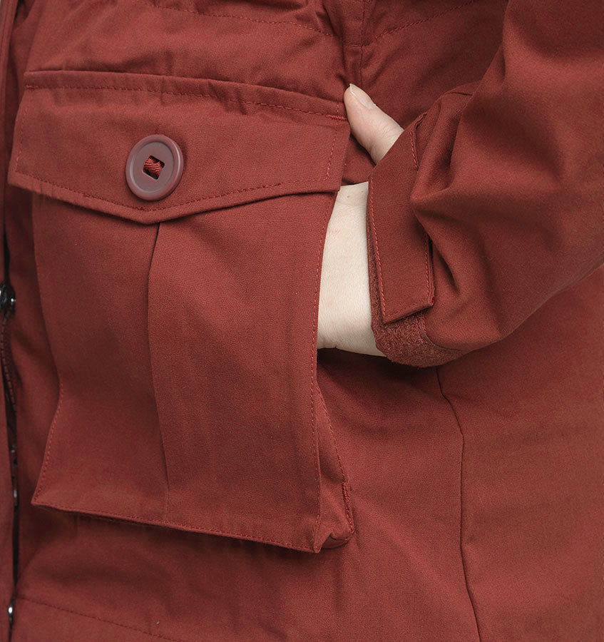 - Two-way YKK zipper with stormflap and snap-fasteners