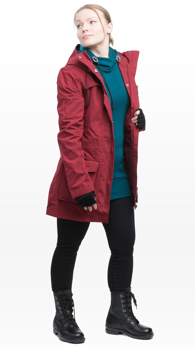 Copied almost directly from the British army article, the original Särmä Windproof Smock has a very loose cut for reasons. A lot of women found the jacket to be desirable in principle but the fit didn't work for them, so we took measures to help: the Windproof Parka is narrower at the shoulders, has smaller sleeves, and a roomy bottom. Those are the important changes, but a lot of smaller details have been reworked as well.