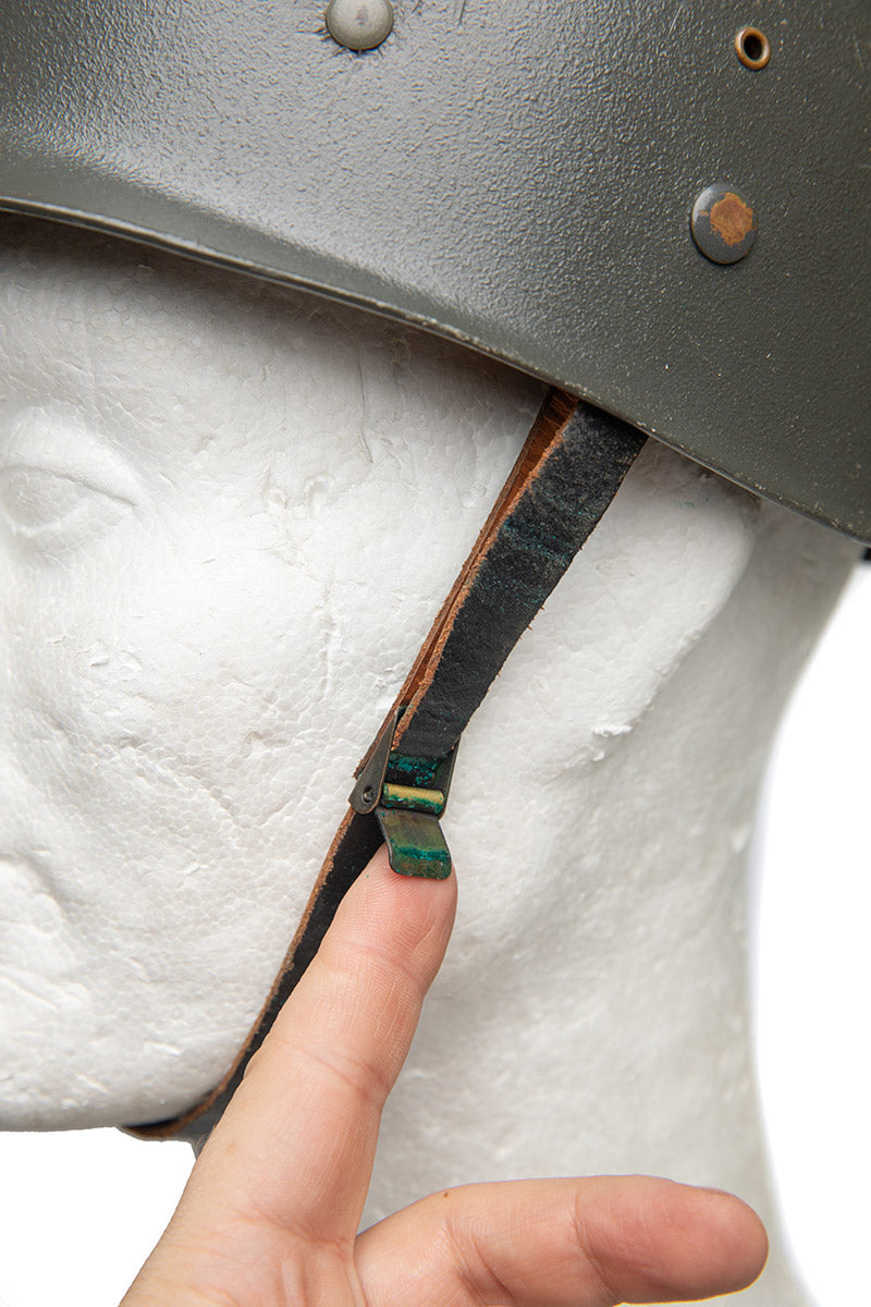 The M1 steel pot saw action in every conflict from WW2 to the 80s. The helmet had a two-layer structure that combined the outer protective steel layer with an inner helmet, that shielded the wearer’s head from the hard outer shell. The Austrians decided to switch it up a bit and replaced the cotton insides with their own leather cushions. Leder, ja!
