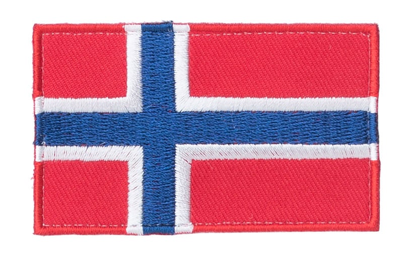 A flag patch of Norway, can be attached to a velcro base on your sleeve or other gear.