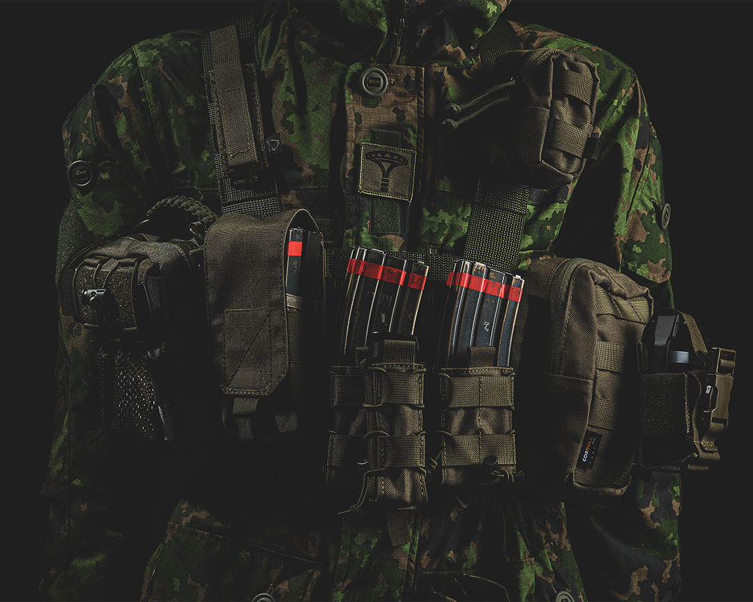 The PALS straps in the back can be weaved to form 50 mm loops for use on a non-PALS combat belt.