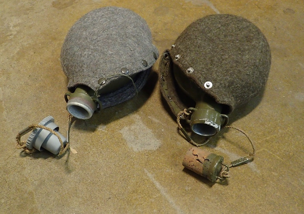 A Czech issue aluminum canteen with a felt cover and leather straps. Mostly communist-era stuff, these were probably used from the '50s to the '90s. Looks like it came from the same design table as the German Wehrmacht water bottle, but certainly isn't identical.