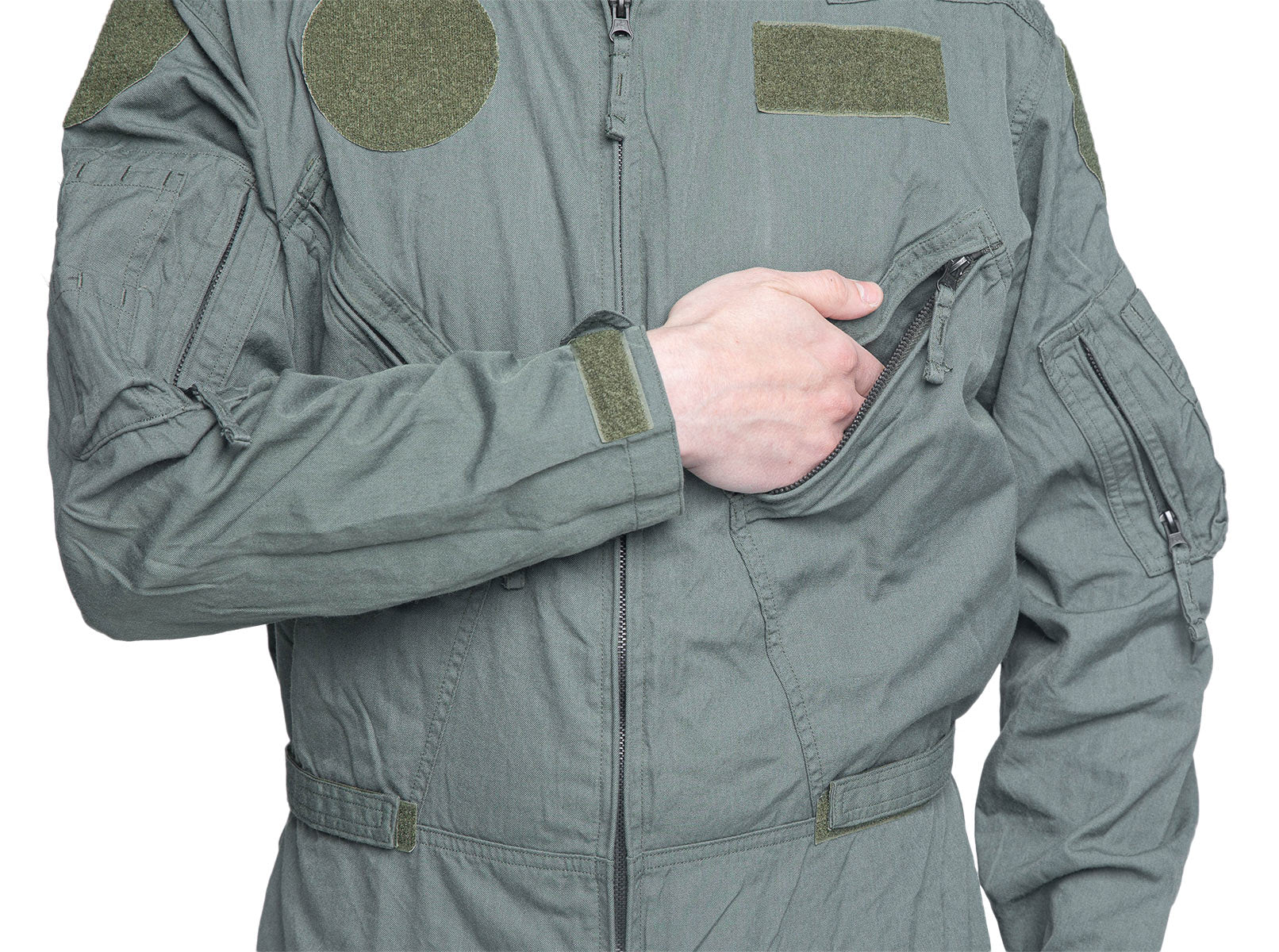 Flame retardant flying coverall in Sage Green. A very US-like model but used by the Dutch Royal Air Force KLM. Single batch, these are unlikely to be restocked. If you want one, act now!