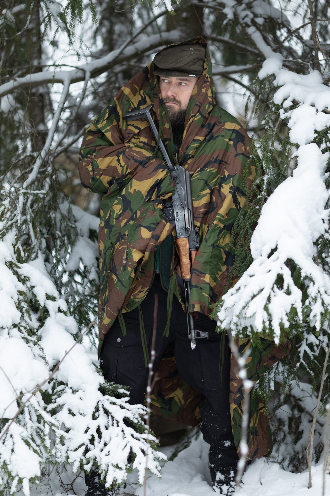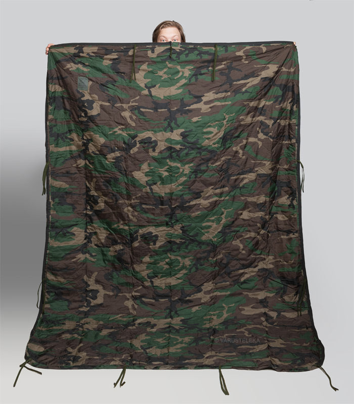 The lightweight poncho liner, or "Woobie," was designed by the US military as a replacement for the wool blanket during the Vietnam War. Compared to the blanket, this is a lot lighter, a bit warmer, dries faster, and can be squeezed into a pretty small space. These are Dutch army surplus copies of the US model.