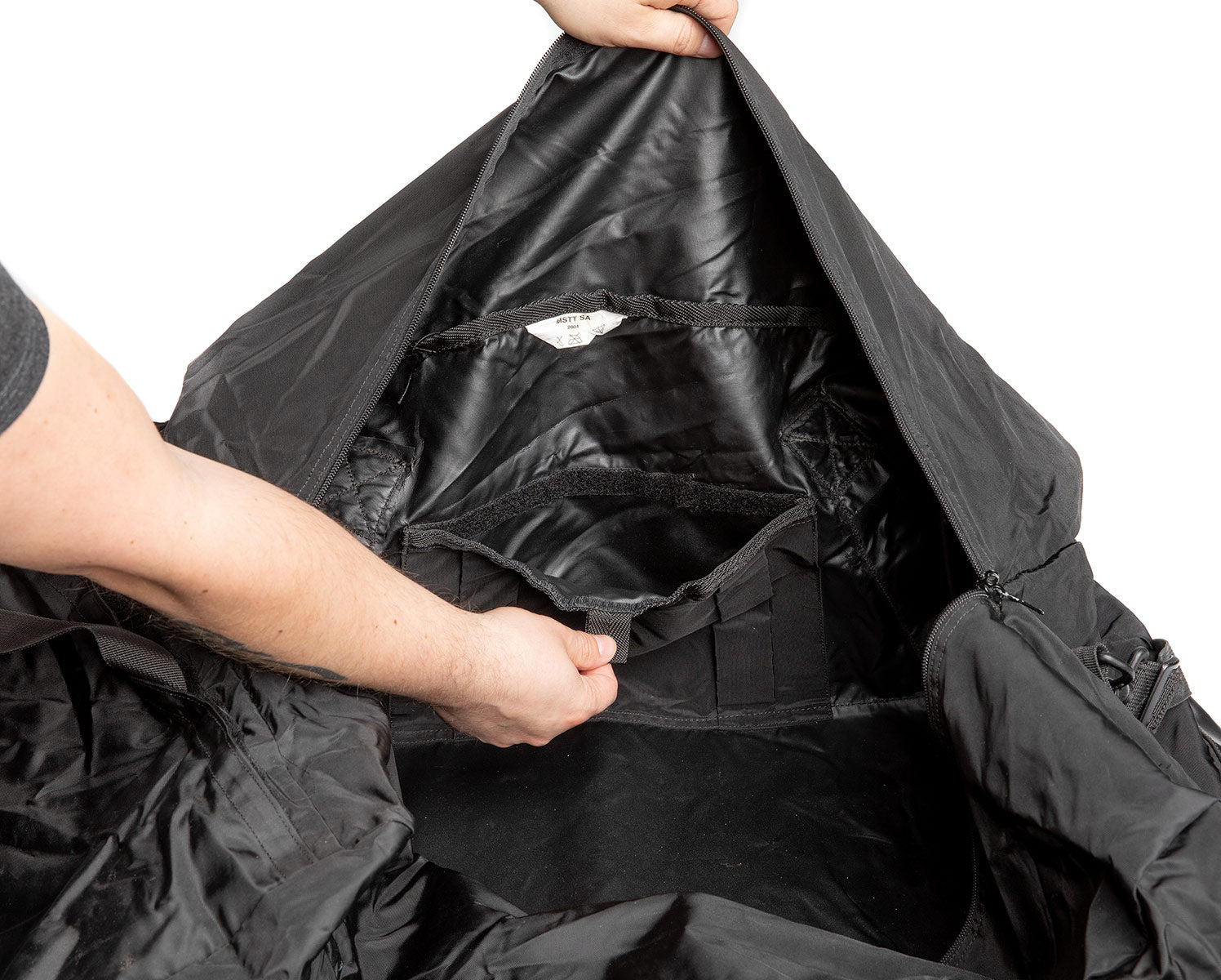 Getting into the bag involves opening one zipper. It's full-length and unobstructed to reduce hassle. On the inside, there are two organizing pouches on the sides with pleats to allow fairly large items to be stuffed in.