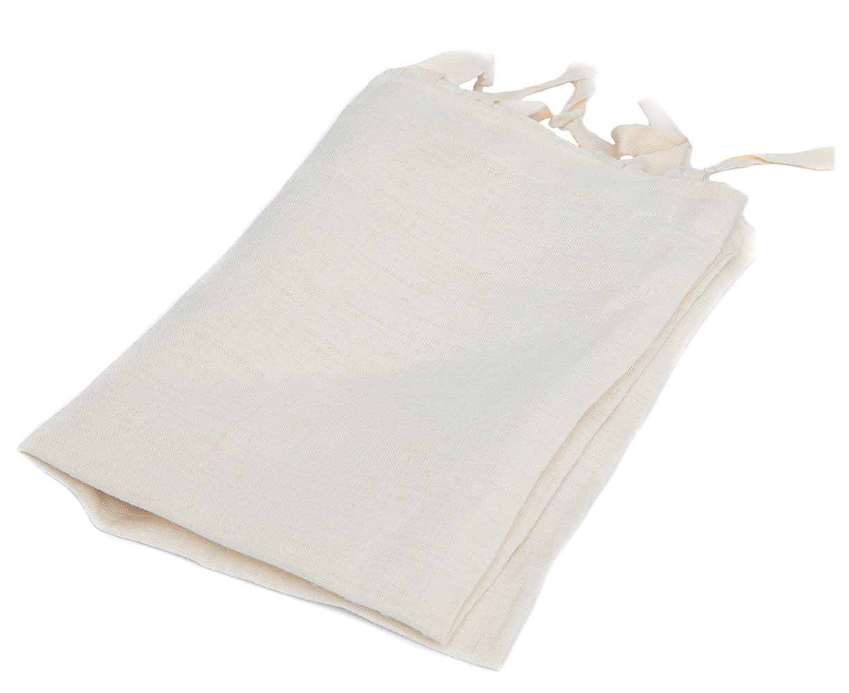 Cream colour, measures 46 x 62 cm (18.1" x 24.4"), tie-string closure.