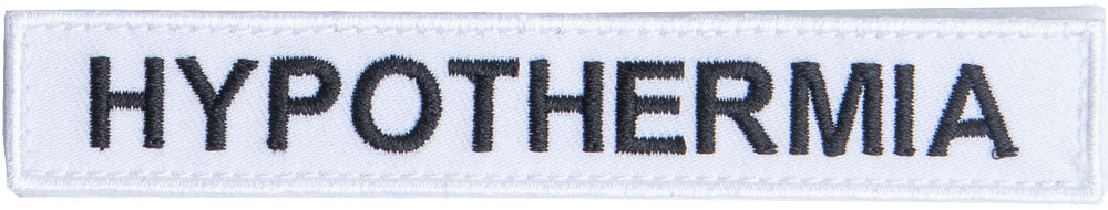 Various colors and texts available to cover bleeding, hypothermia, airways, and so on. The back has hooks (of hooks-and-loops) so you can slap these on various pouches, backpacks, and bags as you like.