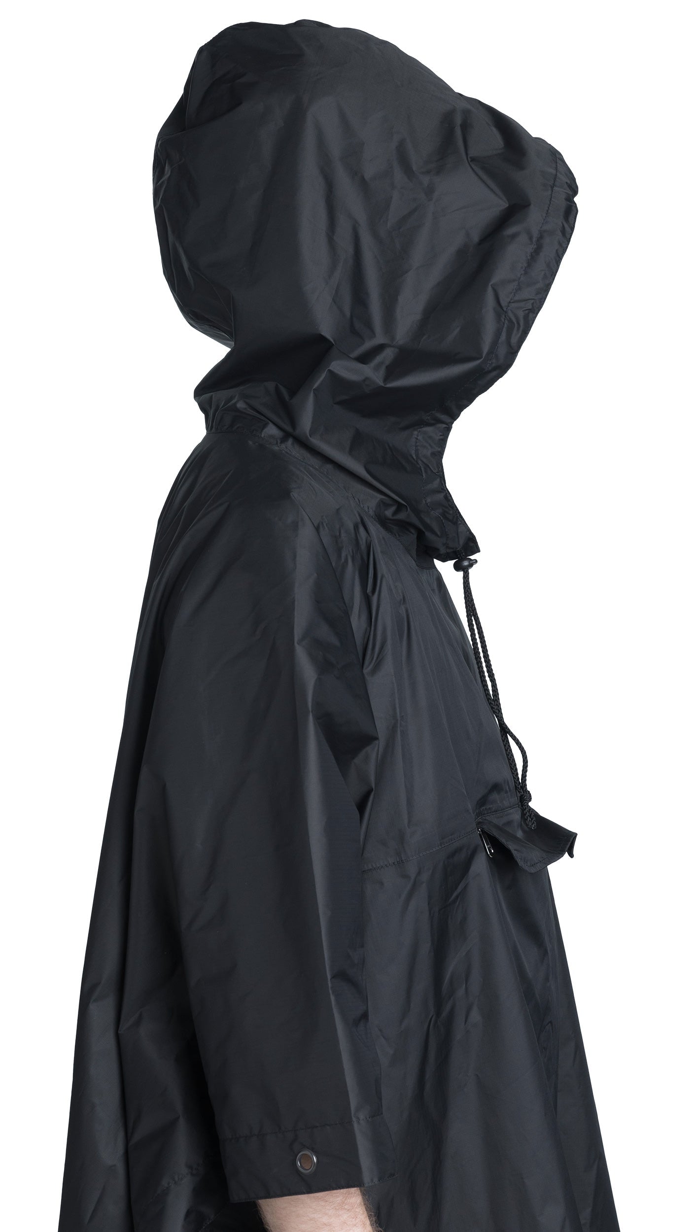 • The snaps are reversed on one side, so you can roll the poncho up and close it over your sleeping bag if needed