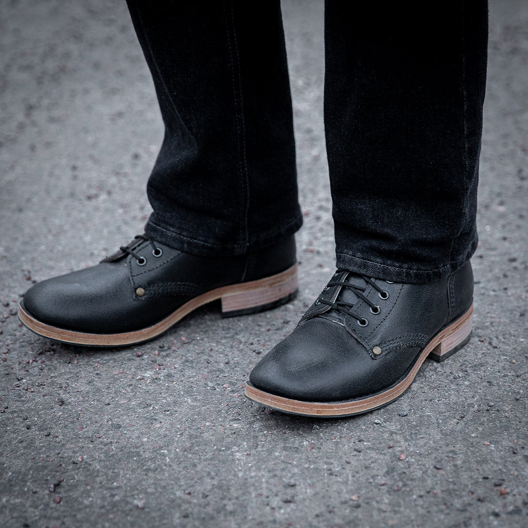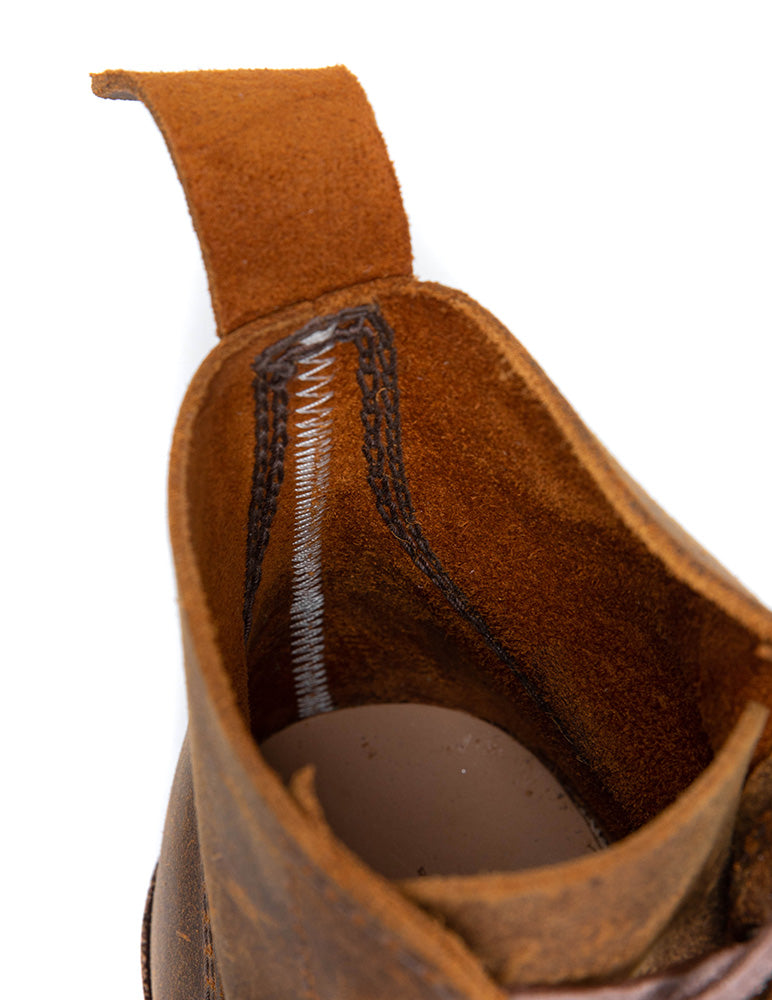 As the shoe has a full leather construction, it will serve a long time provided it's regularly cared for. The manufacturer recommends first wearing the boots in dry conditions and as they slowly start to form, you can start applying grease on them from time to time. With use and with proper treatment, the leather will soften, darken, and smoothen, but you can "rough it up" with a brass nubuck brush if you so wish. We do not recommend shoe polish for this boot, use colorless grease instead. The gap between the upper and the sole must be paid special attention.