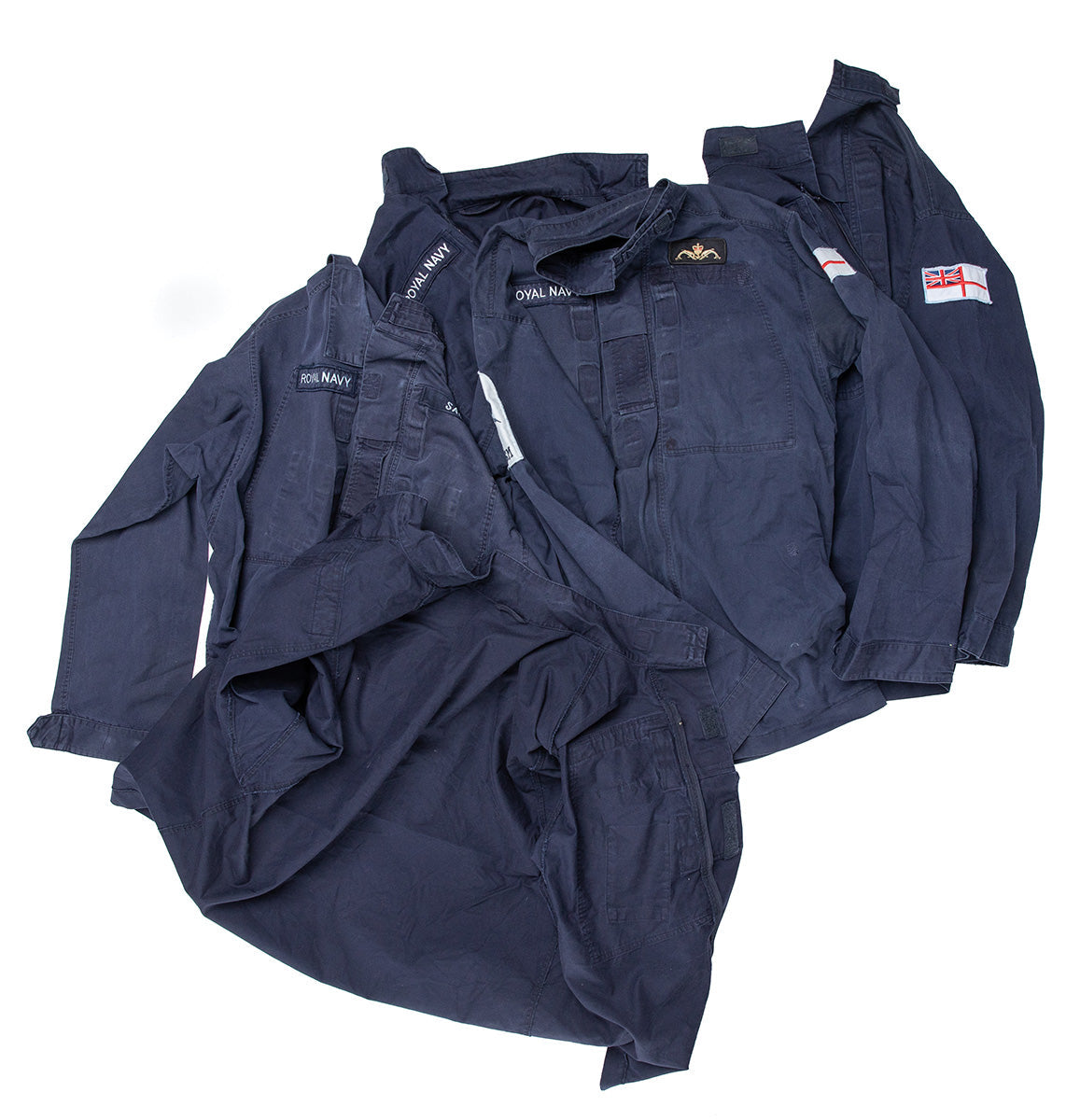These have various Navy-related patches on the chest and sleeves, but they can vary to some extent. At least some of these have been fire retardant, but I wouldn’t rely on it anymore.