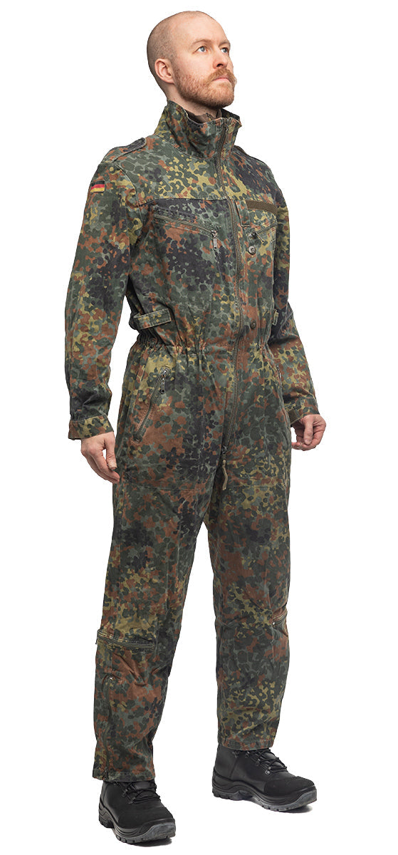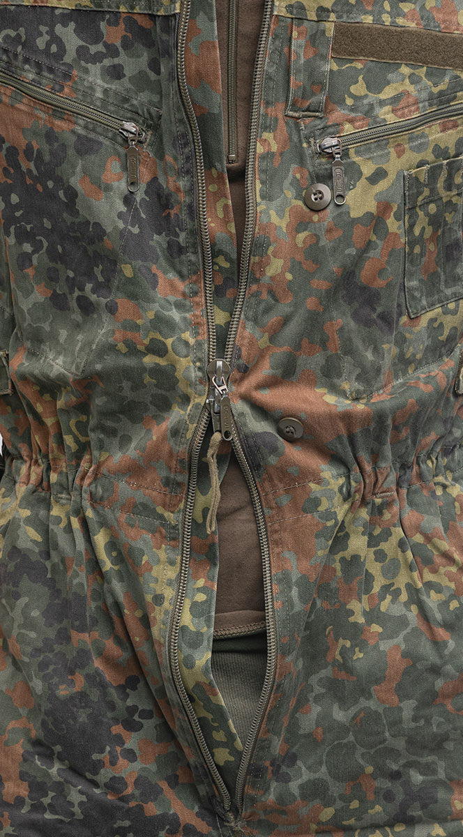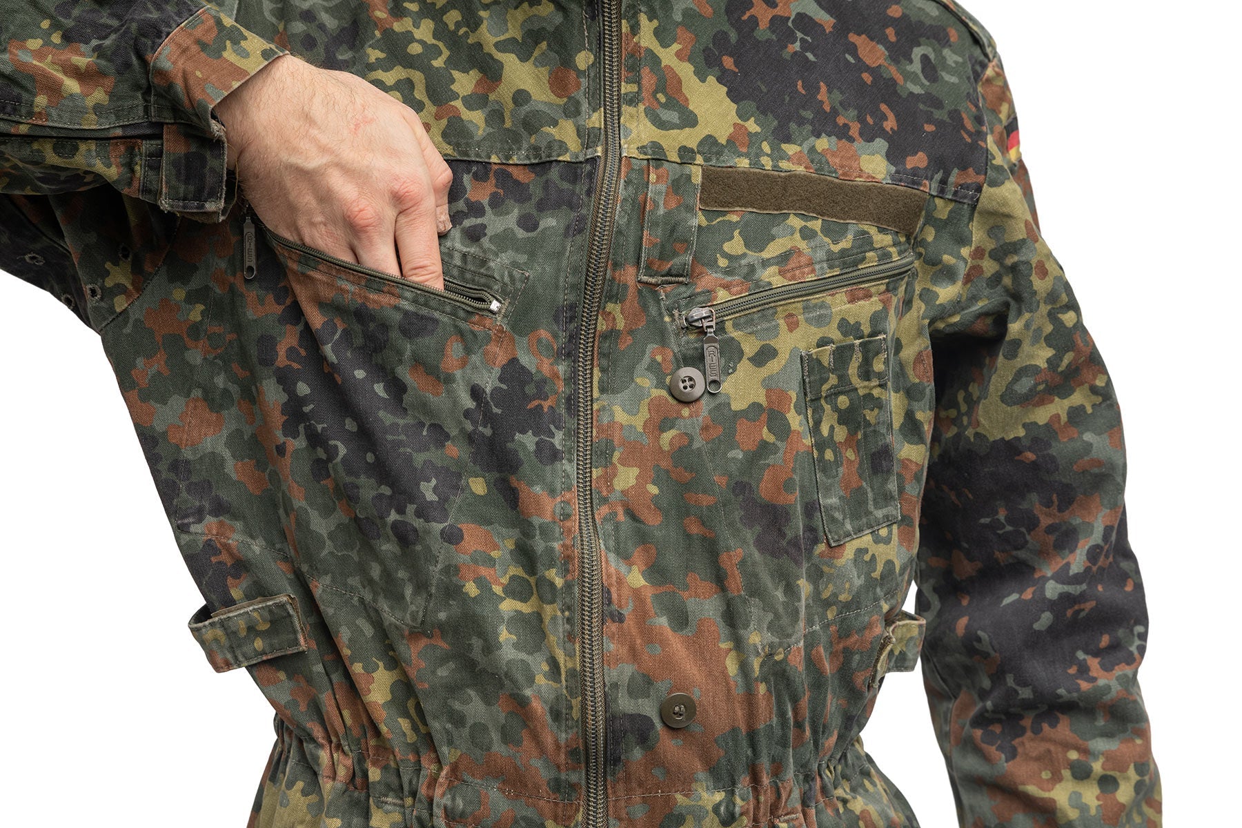 Made of the same fabric as the Bundeswehr Flecktarn camouflaged parka and field trousers, this coverall is a natural extension of the BW lineup meant for armoured vehicle crewmen; when you spend your life in cramped space, snag-free clothing is a must. Hell, who knows if some of these would have been used by the KSK too...