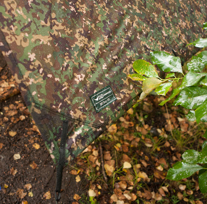 DD Multicam is DD Hammocks' own take on Multicam, basically a sort of Flecktarnish (the German army camo) pattern with Multicam style sandy colors. It is quite a lot darker than the original Multicam making it blend in far better in lush forests.