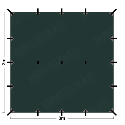 - Measures 3 x 3 meters / 9.8 ft x 9.8 ft. Weight 950 grams / 34 oz. for the whole package.