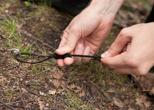 Pro-tip:You could always use bungee cords for setting up the tarp - an old British army trick! They're very fast and easy to use, but in really rough weather might be too flexible.