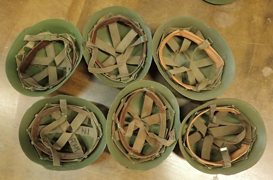 Clearly used, probably for dirty deeds. They are still intact for the most part but don't expect perfection. We would like to say here's a nice cheap steel pot, but they're not nice at all. Not sold for real protective purposes, only for show.