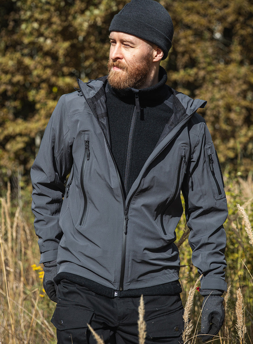 • Stretch-elastic cuffs create a secure fit to your wrists