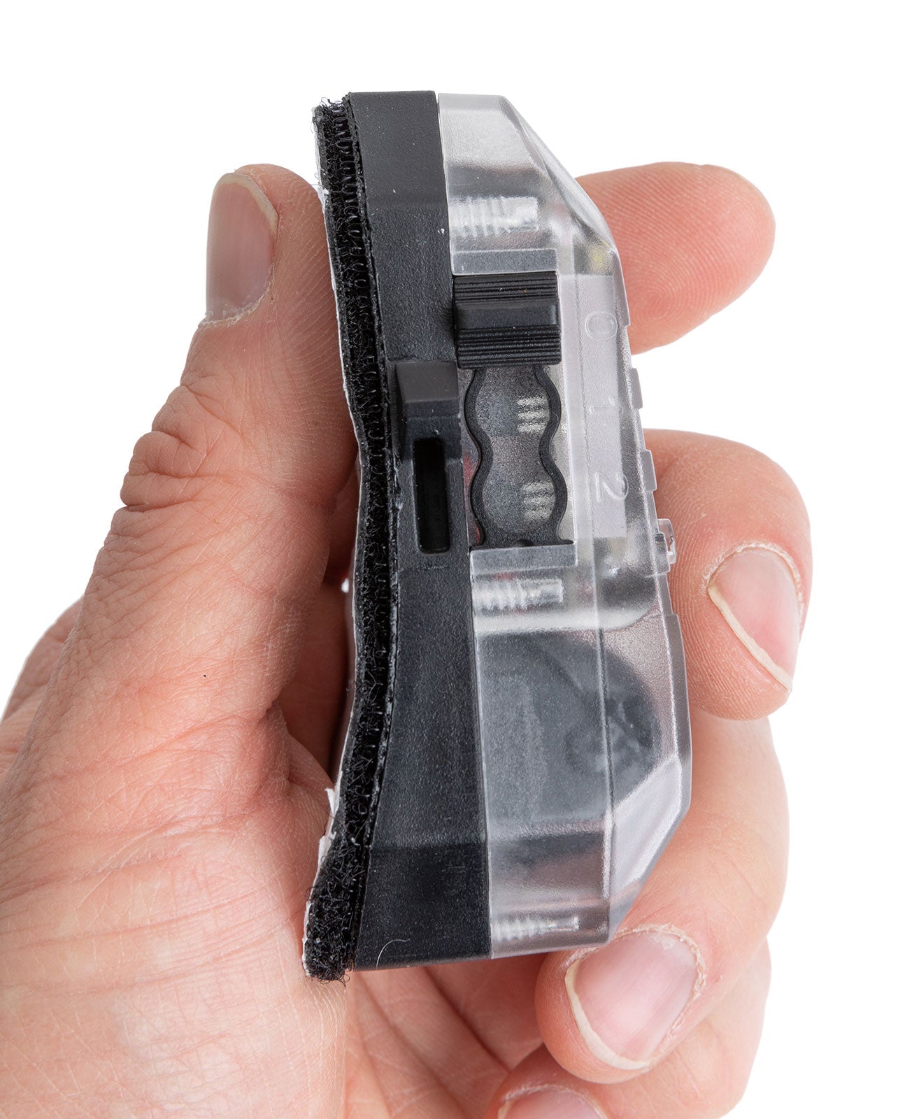 The function switch features a nub below to allow checking the selected function by finger-feel even with gloves on. The mode switch has a smaller similar nub above, or you can just memorize "Visible / Front" and "IR / Rear" - assuming you mounted the light correctly. The light provides vibrating feedback to confirm it has been turned on in the IR mode.