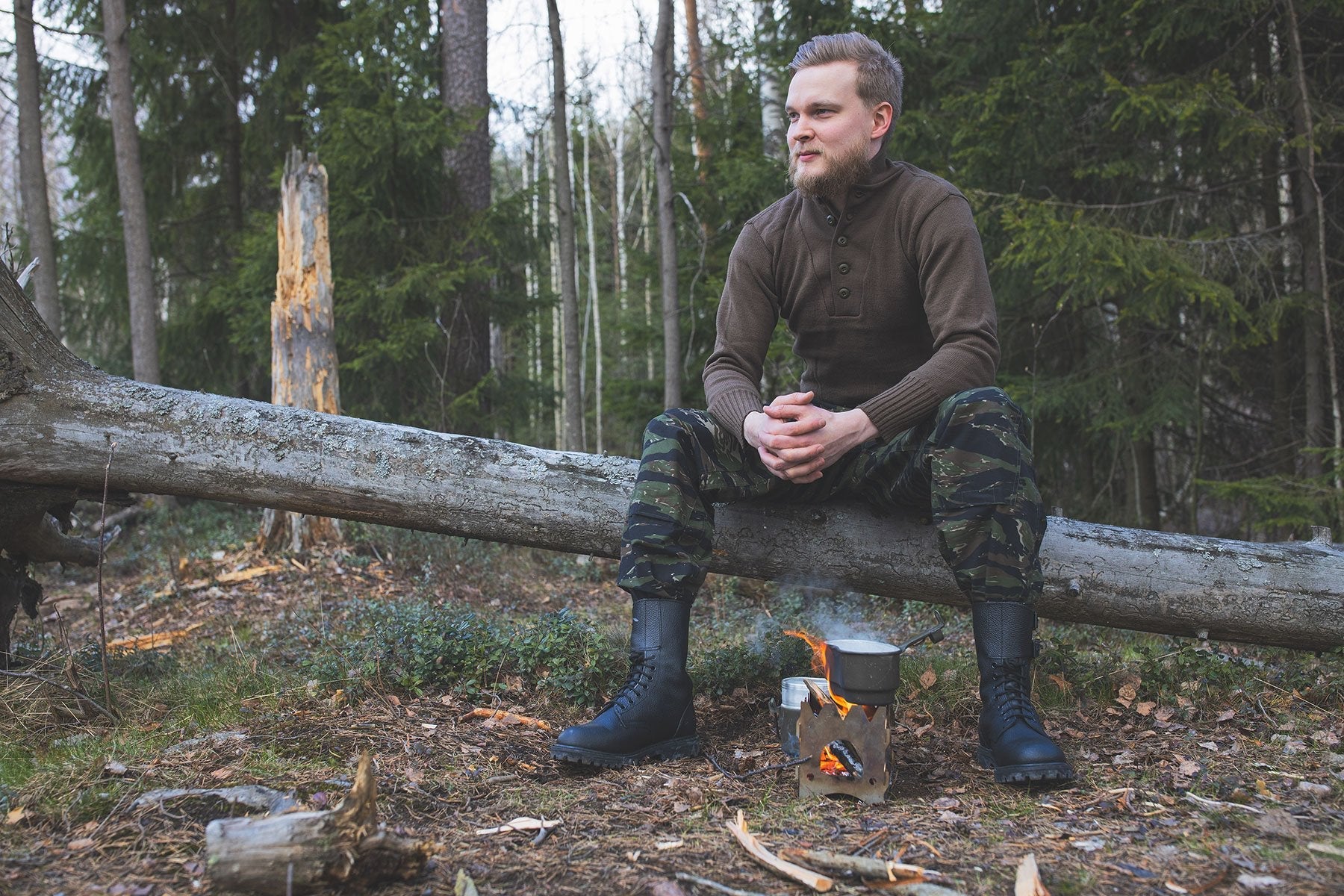 US 5-Button Sweater, OD Brown