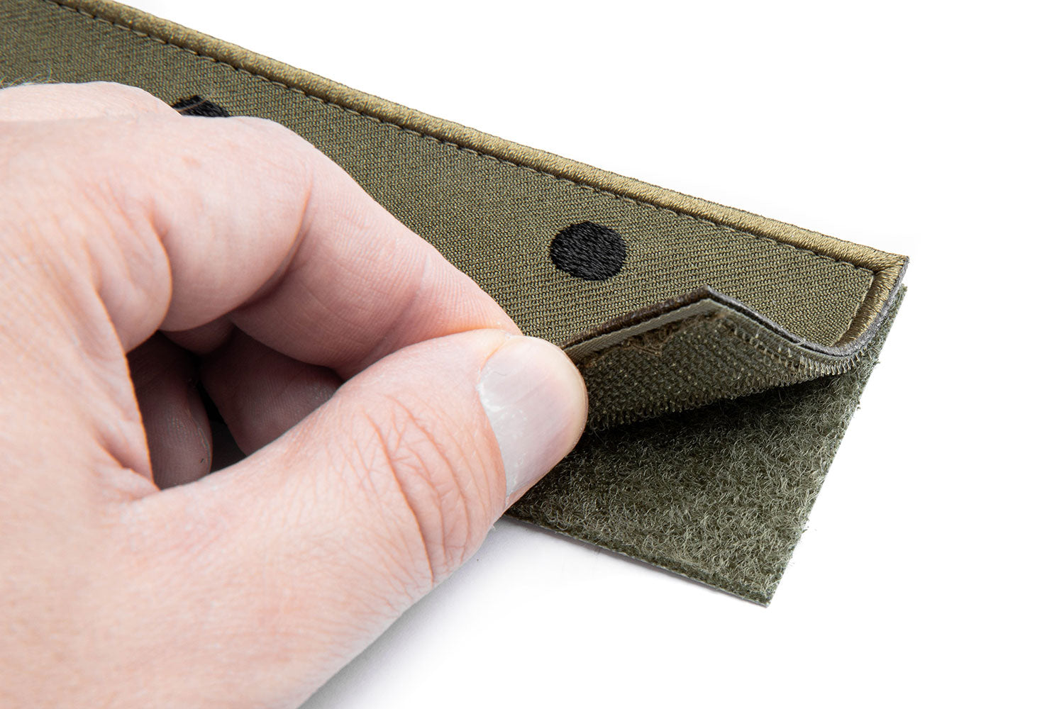 Size 50 x 130 mm (2" x 5.1"). With hook backing to slap on your Velcro base.