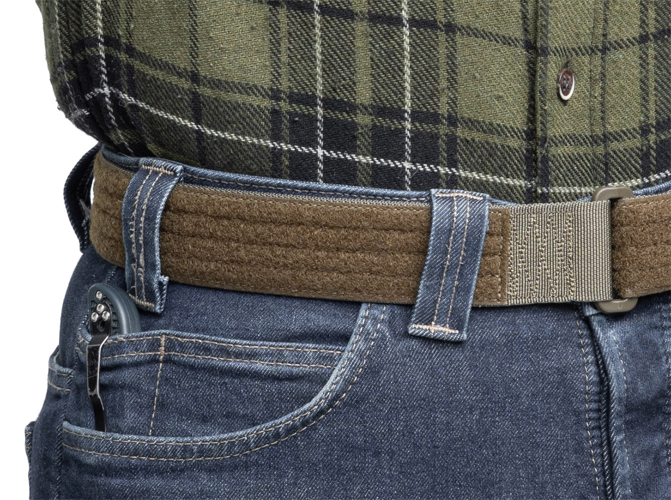 The Varusteleka Under Belt is compatible with all shooter's belts and equipment belts with hooks on the inside.