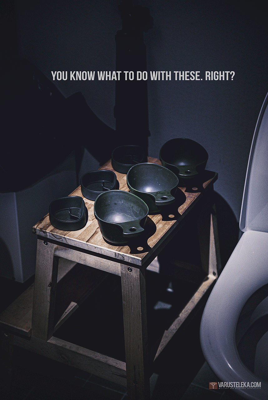 Vetoisuus semmoiset 4-5 desiä, eli suhteellisen reilu. Kahvan kolosta voi vetäistä narun tai karbiinihakasen läpi, jolloin kuksan saa roikkumaan vaikka repusta. Sopii muuten täydellisesti ruotsalaisen pakin sisään!