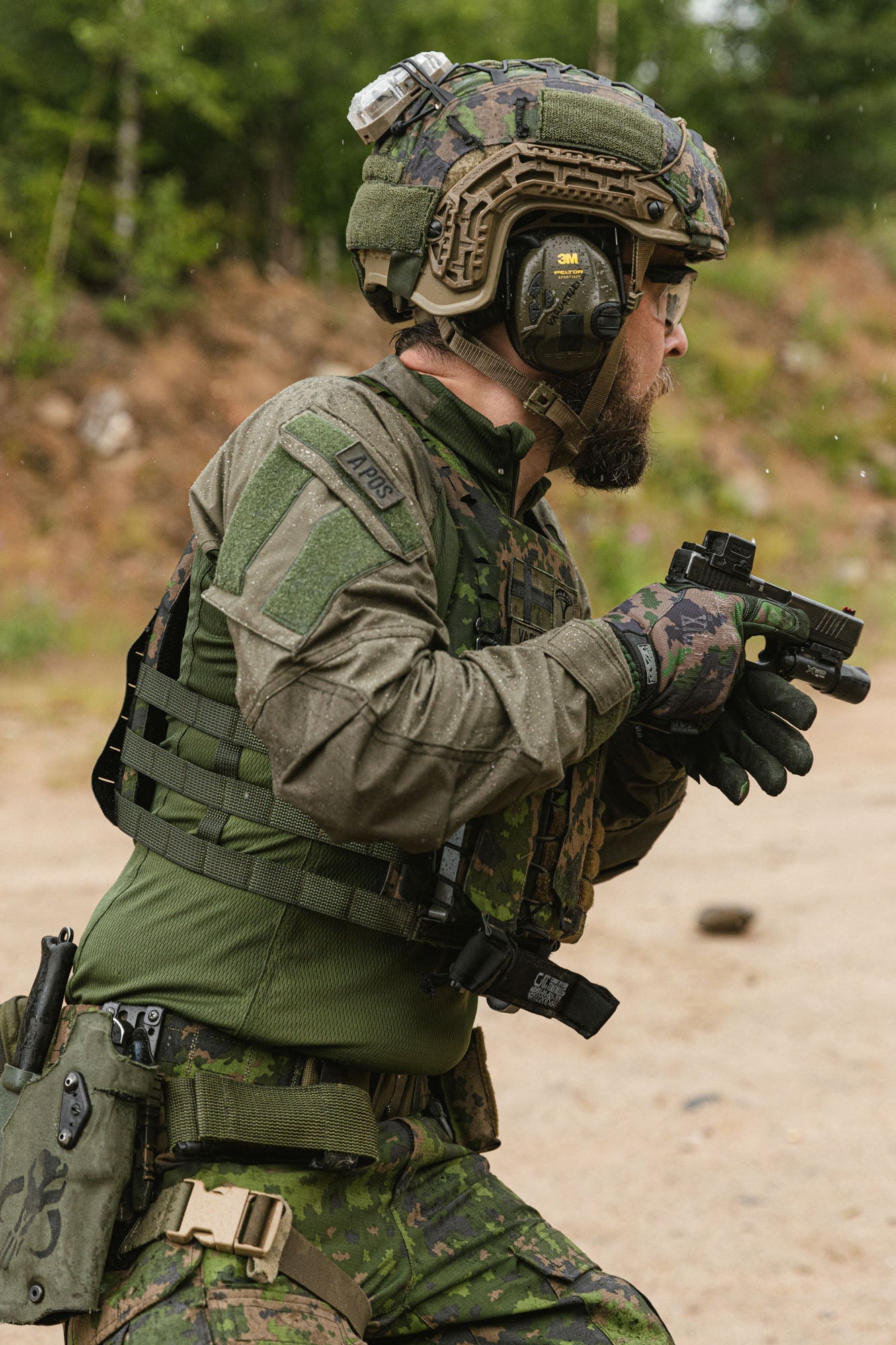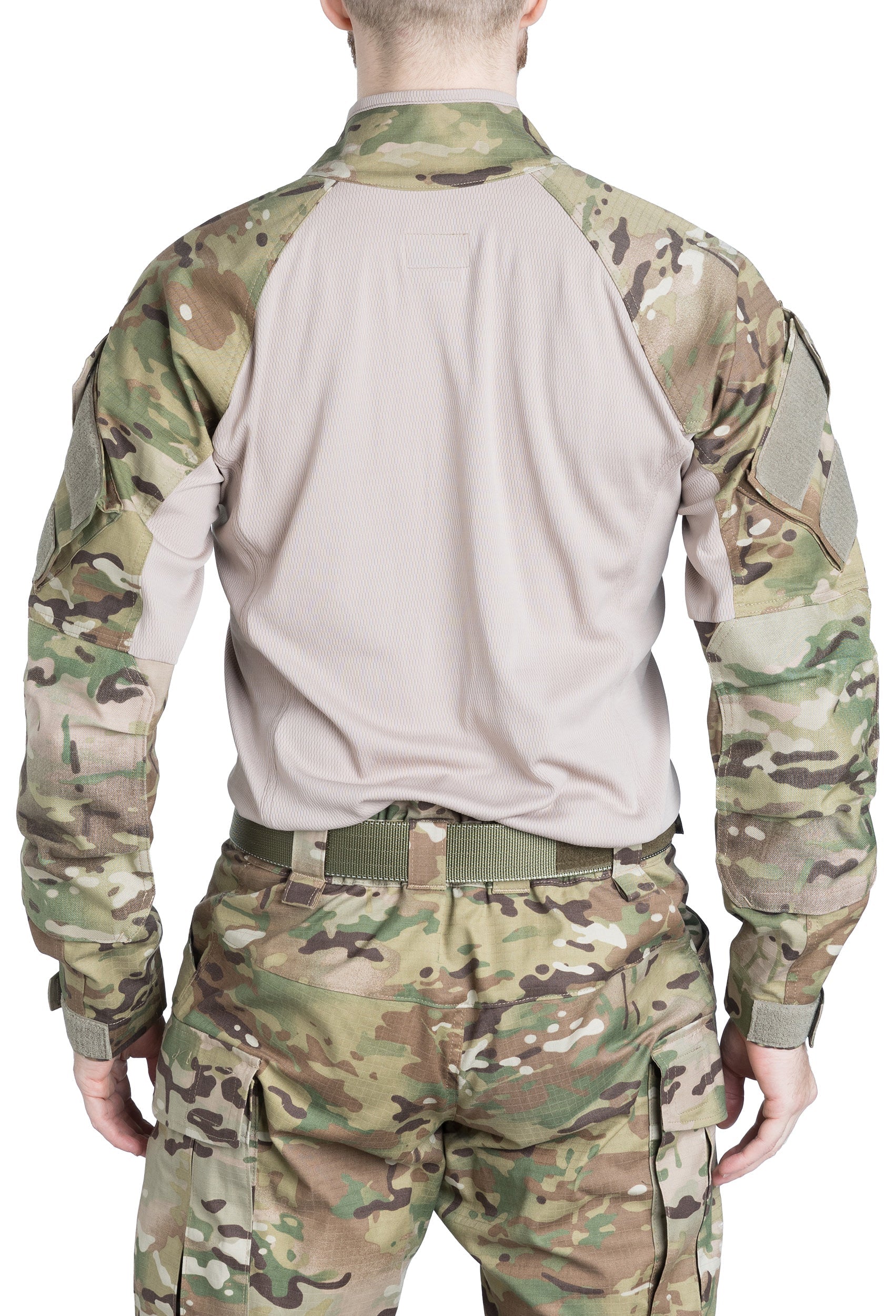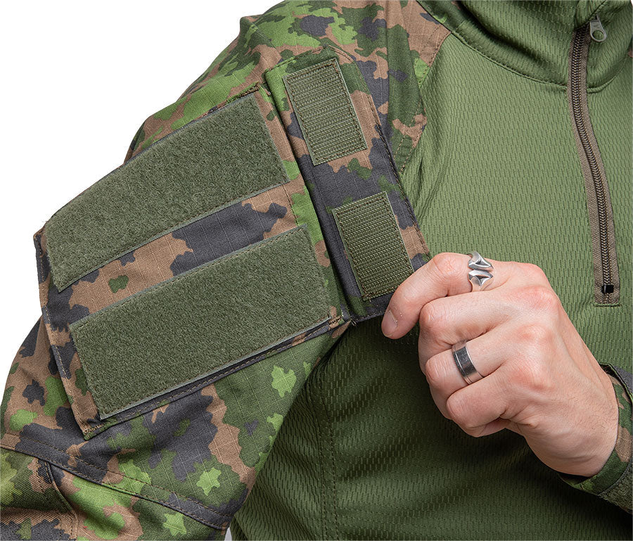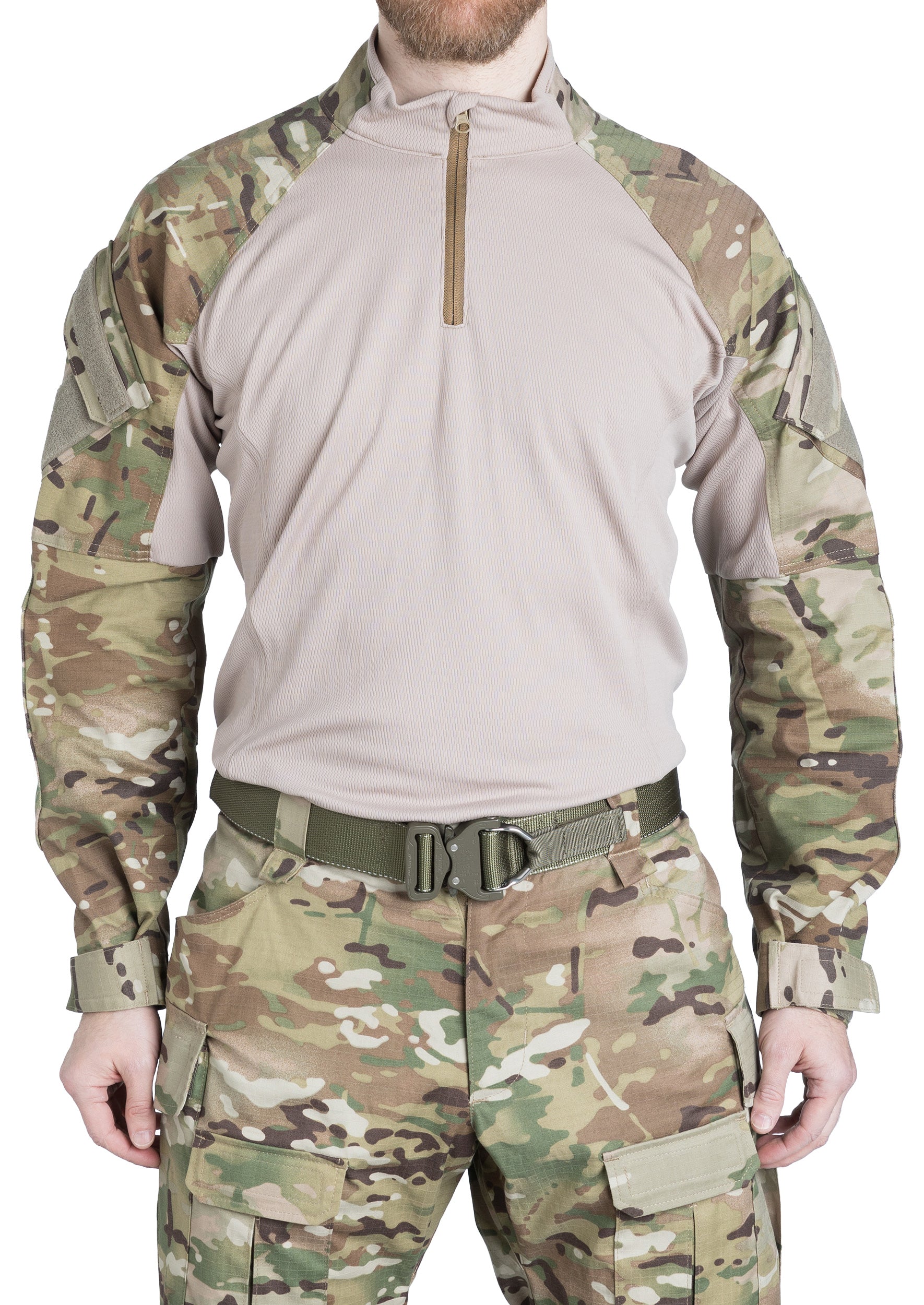 Kevyt ja hengittävä taistelupaita helpottaa lämpökuormaa ja parantaa jaksamista erityisesti kuumilla keleillä raskaiden suoja- ja varusteliivien alla. Aluspaitamaiseen torsoon kiinnitetyt pystykaulus ja maastotakkimaiset hihat suojaavat ja tarjoavat taskutilaa tärkeille pientavaroille. Kulutukselle alttiit kyynärpäät on viimeistelty Cordura-vahvistetuilla kyynärsuojataskuilla.