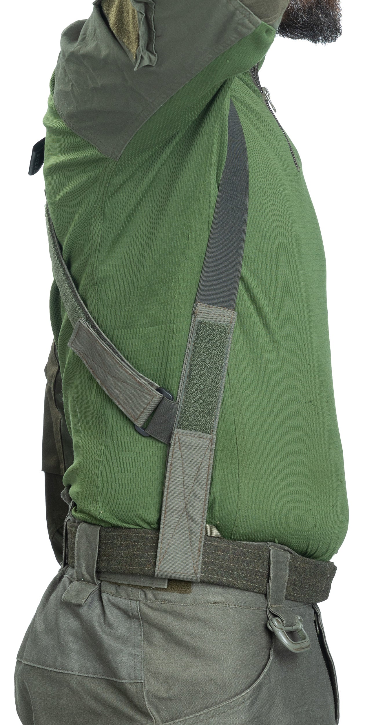 Säädettävät ja kestävät henkselit varusteiden täydelliseen kantokokemukseen – leveät ja joustavat olkaimet tarjoavat varmuutta ja mukavuutta liikkumiseen! Henkseleissä ei ole epämukavia koukkuja tai nipistimiä; nämä kiinnittyvät tarranauhahihnalla housujen henkselilenkkeihin tai erilaisiin vöihin.